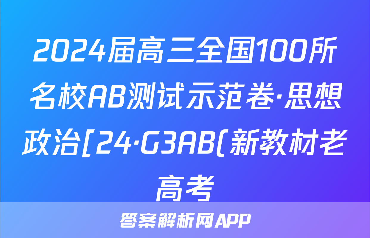 2024届高三全国100所名校AB测试示范卷·思想政治[24·G3AB(新教材老高考)·思想政治-R-必考-QGB]二试题正在持续更新,目前2026金太阳答案网为大家整理了相关试题及答案,供大家查缺补漏,高效提升成绩。