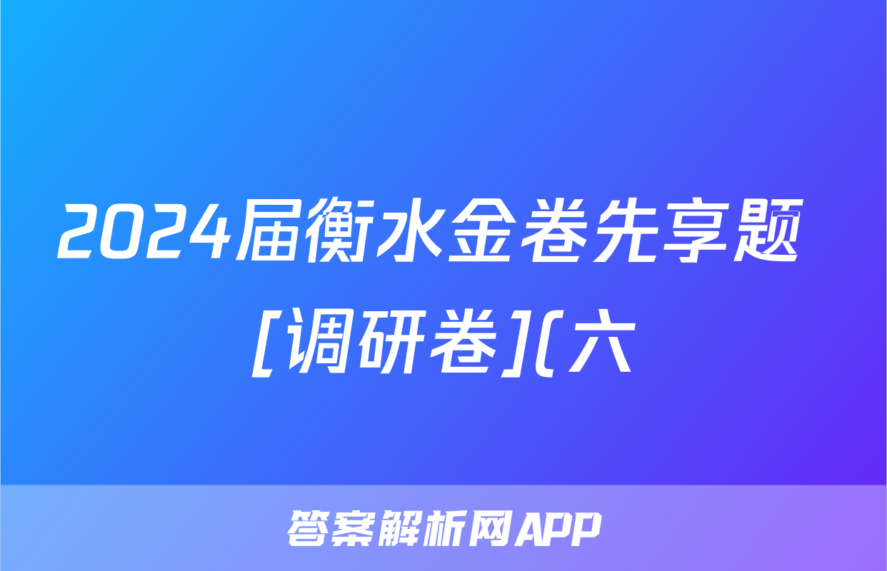 2024届衡水金卷先享题 [调研卷](六)6理数(JJ·A)答案正在持续更新,目前2026金太阳答案网为大家整理了相关试题及答案,供大家查缺补漏,高效提升成绩。