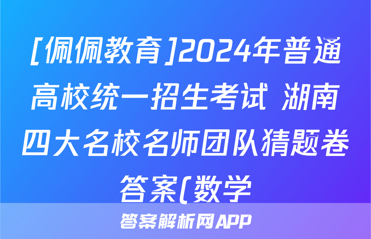 [佩佩教育]2024年普通高校统一招生考试 湖南四大名校名师团队猜题卷答案(数学)正在持续更新,目前2026金太阳答案网为大家整理了相关试题及答案,供大家查缺补漏,高效提升成绩。
